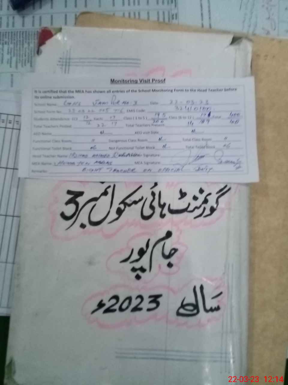 | Attendance Register | Head Teacher | MEA with School | Visit Proof |