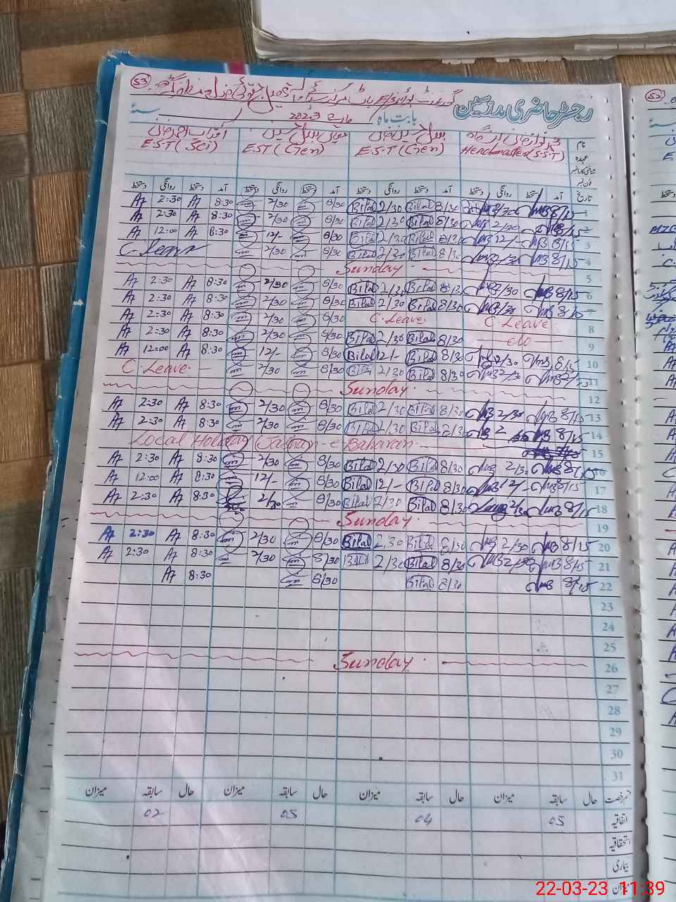 | CNIC | Full Name | Designation | R/C | Absence During Last Calender Month |