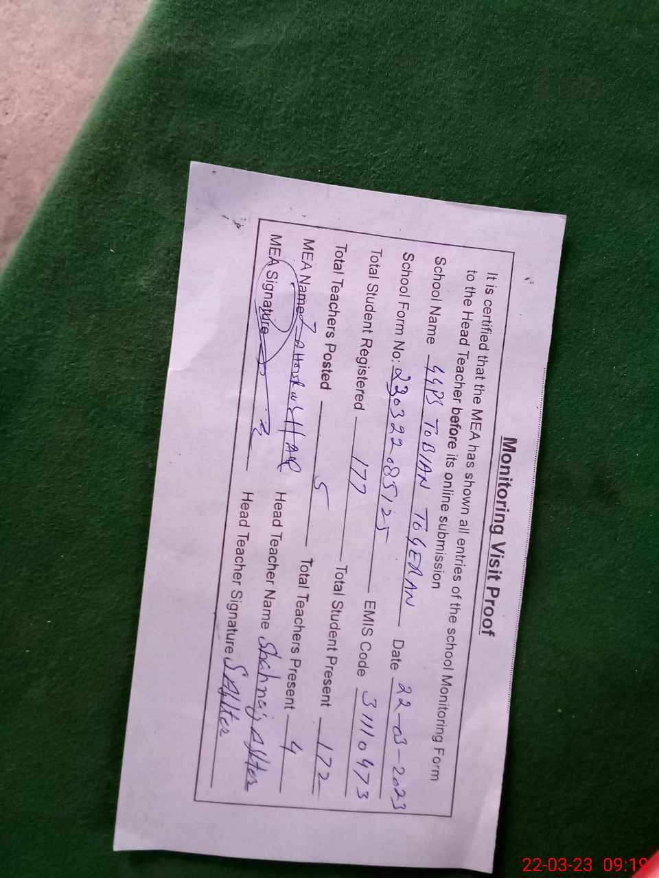 | EMIS Code: 31110473 | Name of School: GGPS TOBIAN TOGERAN | |||