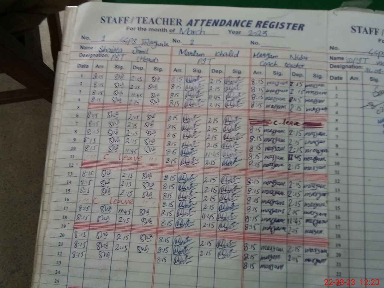 | CNIC | Full Name | Designation | R/C | Absence During Last Calender Month |