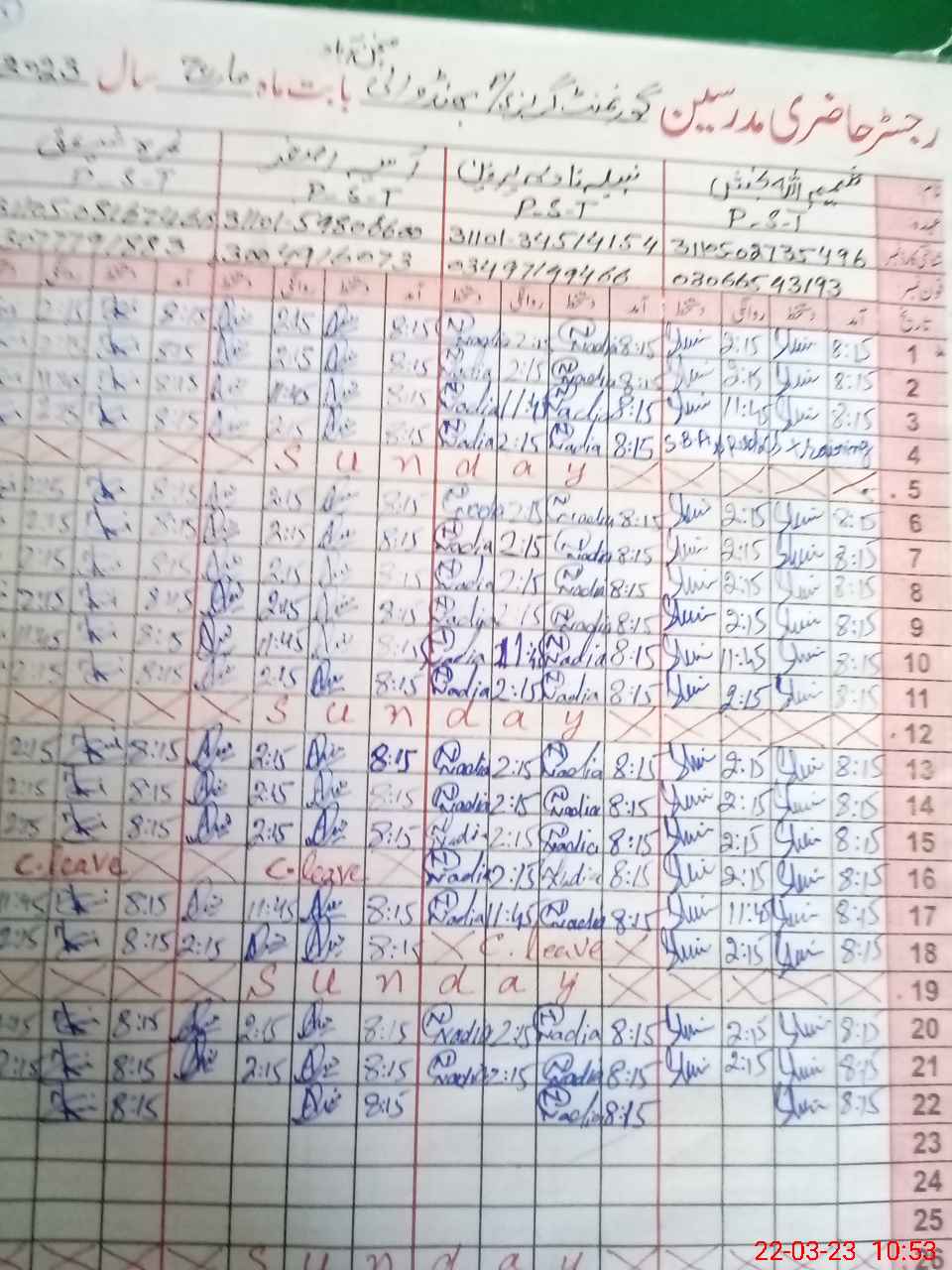 | CNIC | Full Name | Designation | R/C | Absence During Last Calender Month |