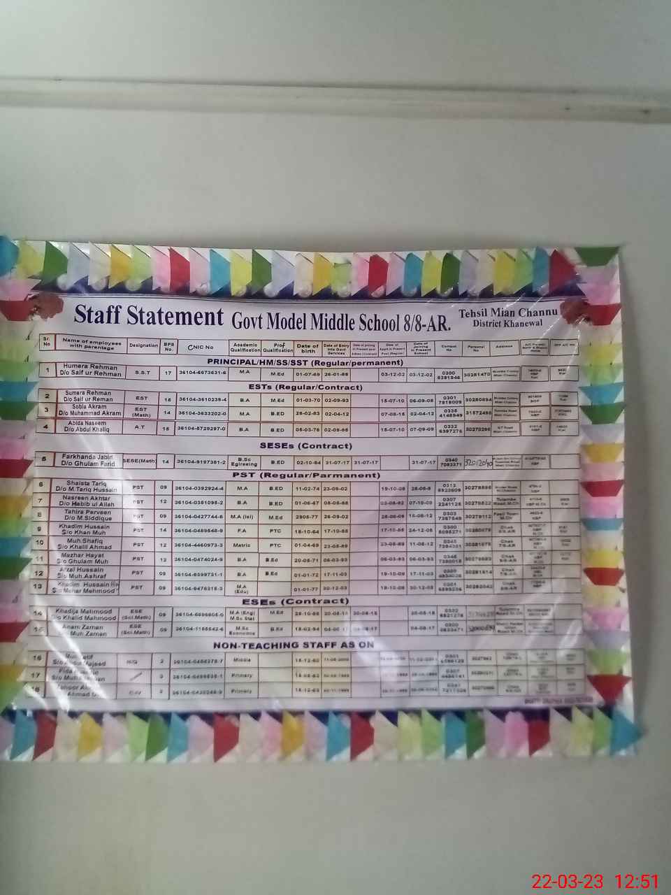 | District: KHANEWAL | Tehsil: MIAN CHANNU | Markaz: TULAMBA-III - FEMALE | Level: Middle | |
