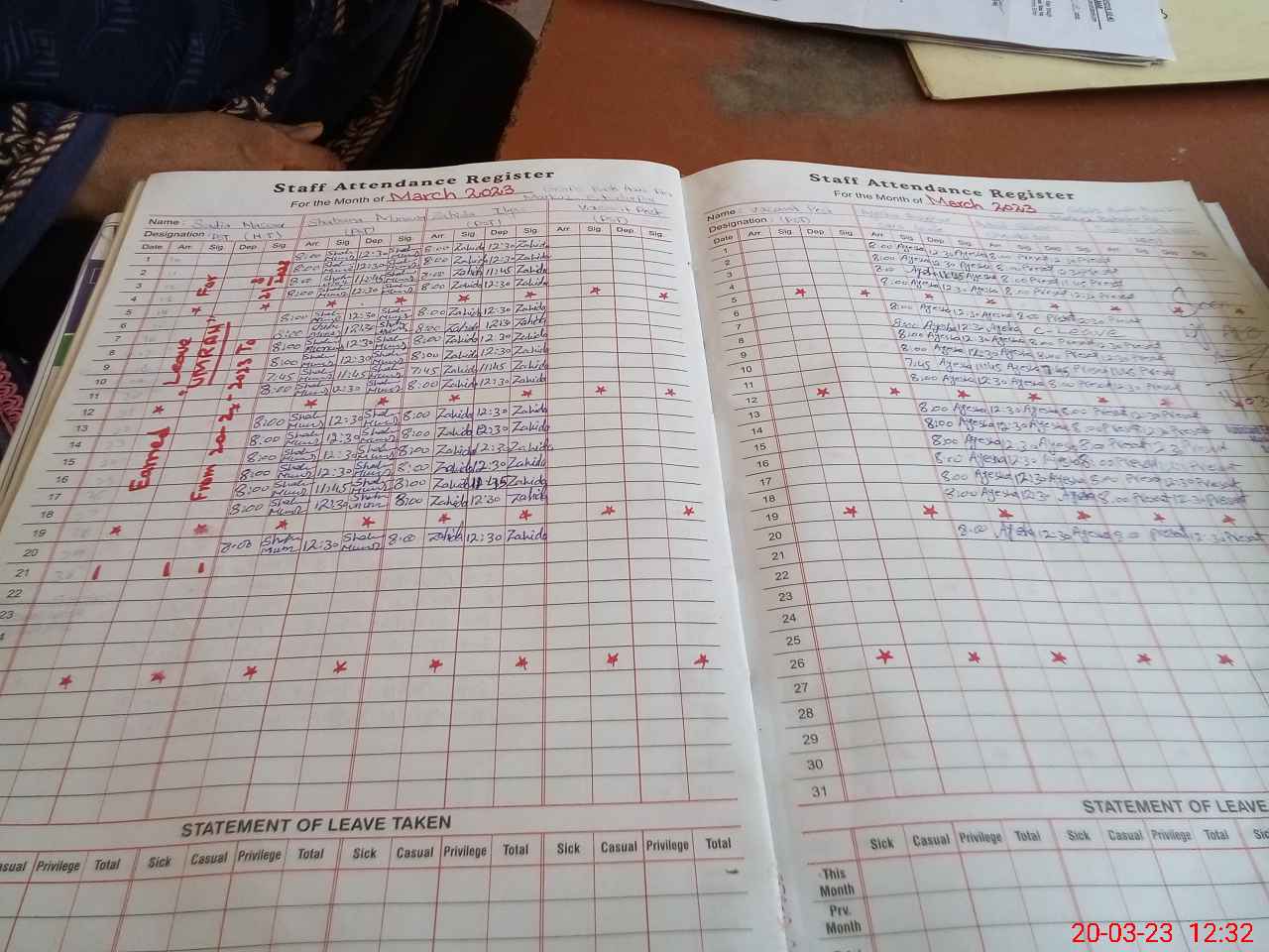 | Leave | Duty | Absent | Maternity | Medical | Ex- Pak |
