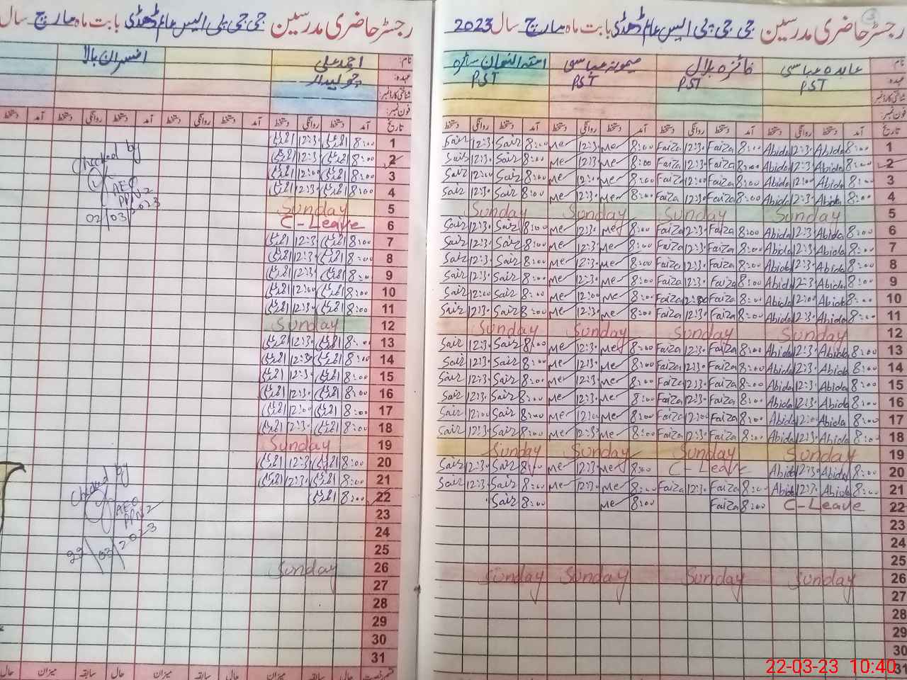 | CNIC | Full Name | Designation | R/C | Absence During Last Calender Month |