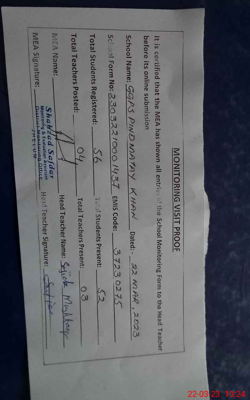 | EMIS Code: 37230275 | Name of School: GGPS PIND MATAY KHAN | |||