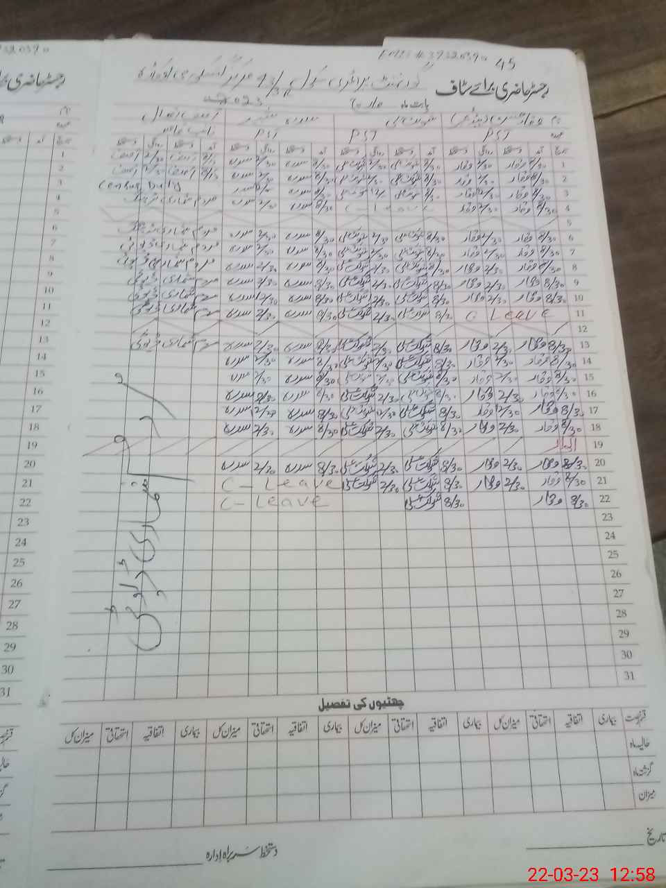 | CNIC | Full Name | Designation | R/C | Absence During Last Calender Month |