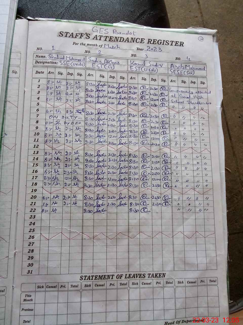 | Leave | Duty | Absent | Maternity | Medical | Ex- Pak |