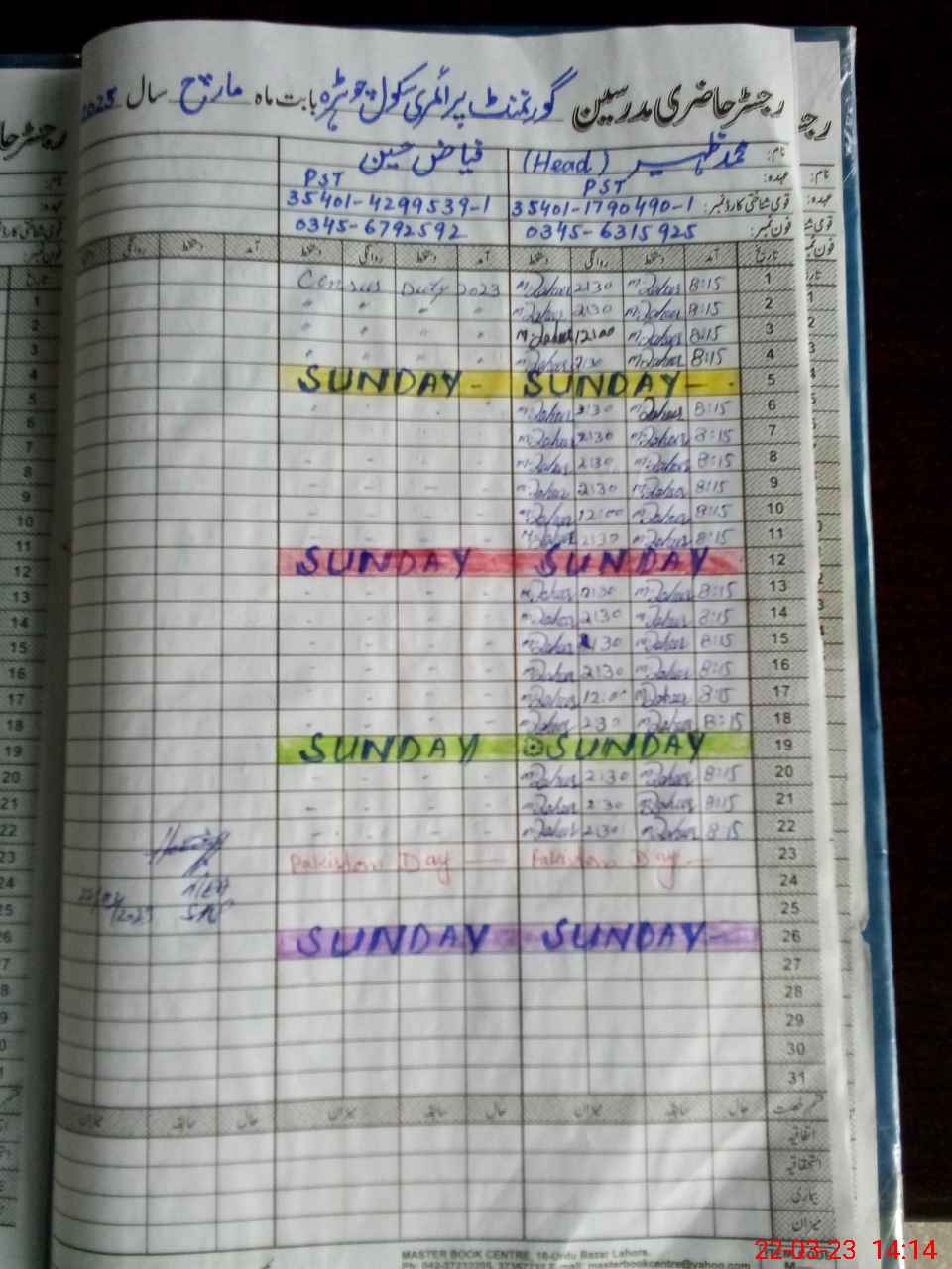 | Name: Mu**** Za**** Designation: (School Headmaster's/Headmistress's) PST Phone/Cell Number: 03**** |