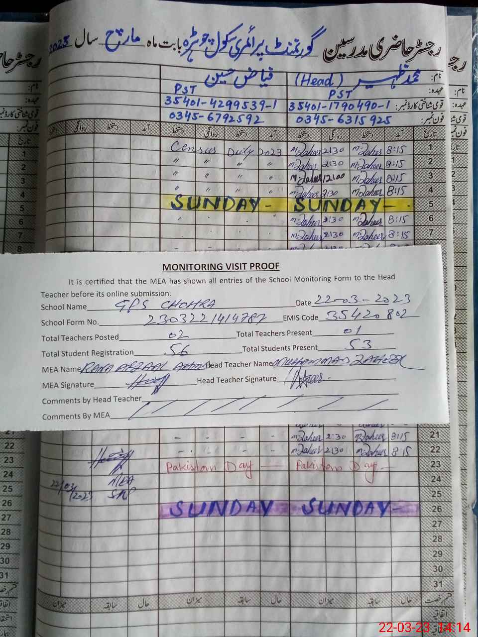 | EMIS Code: 35420802 | Name of School: GPS CHOHRA | |||