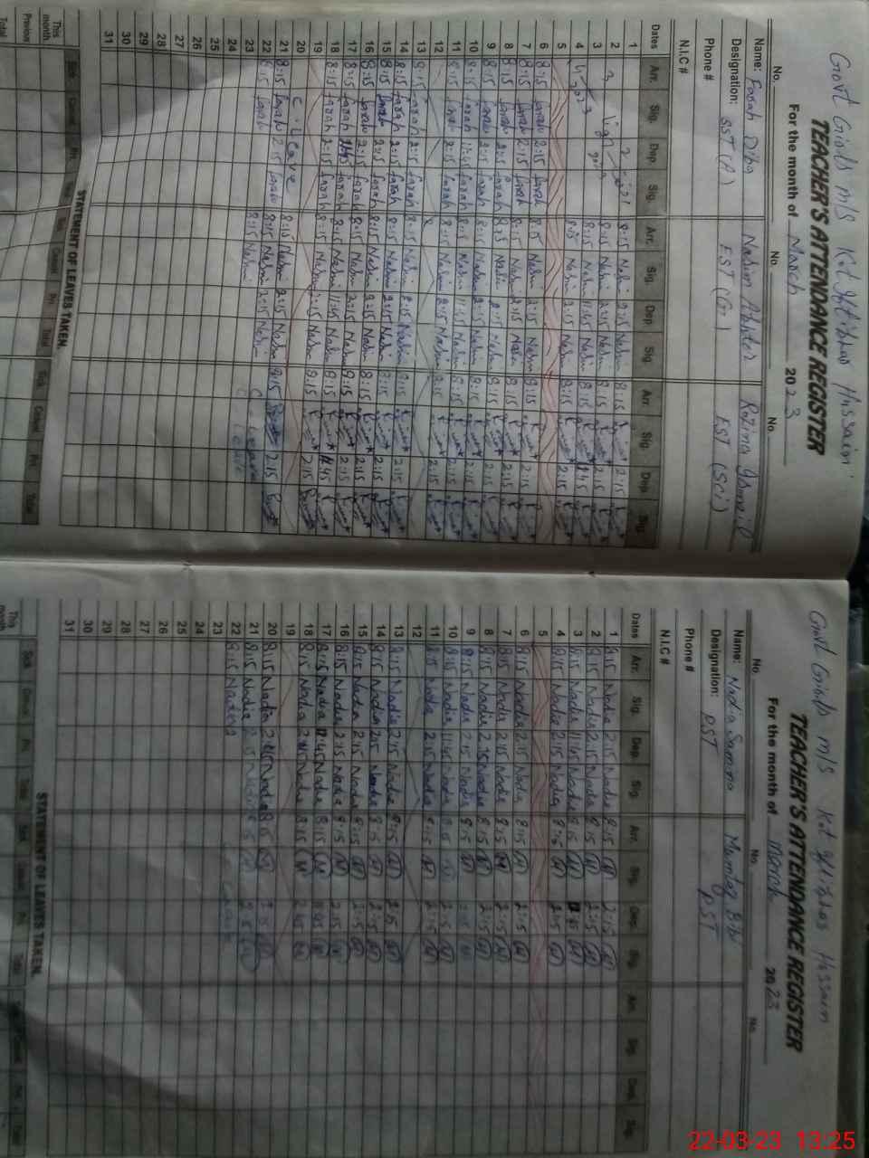 | Remarks (Use Separate Page if Required): 1 previous 8th class online attendance received class promoted and leave the school 2 PST teacher Mumtaz Bibi and Est Rozina Ismail is unauthorized absent from school because head teacher fails to show online and manual leave of both whereas on attendance register both shows on leave | |||||