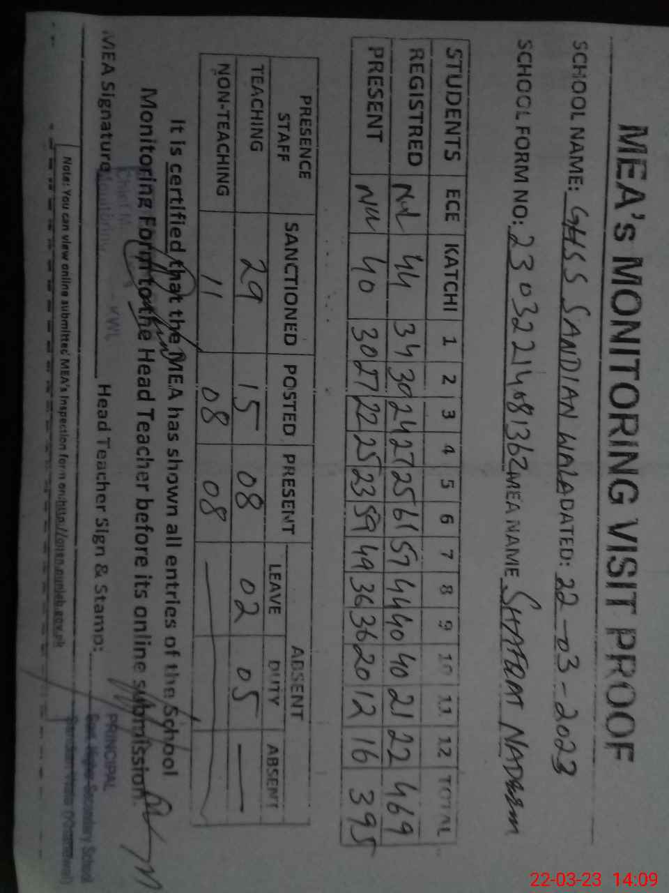 | Certified that this School was Inspected by the Undersigned MEA/DMO Today and the Information Stated Above is as Per Record. | |||||