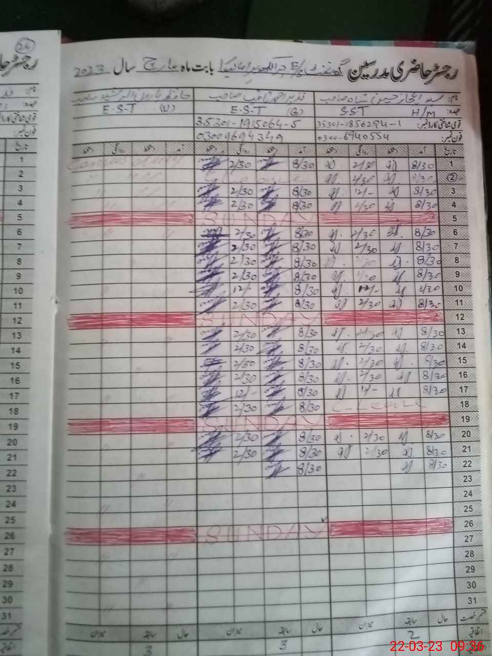 | Name: Sy**** Ij**** Hu**** Sh**** Designation: (School Headmaster's/Headmistress's) SST Phone/Cell Number: 03**** |