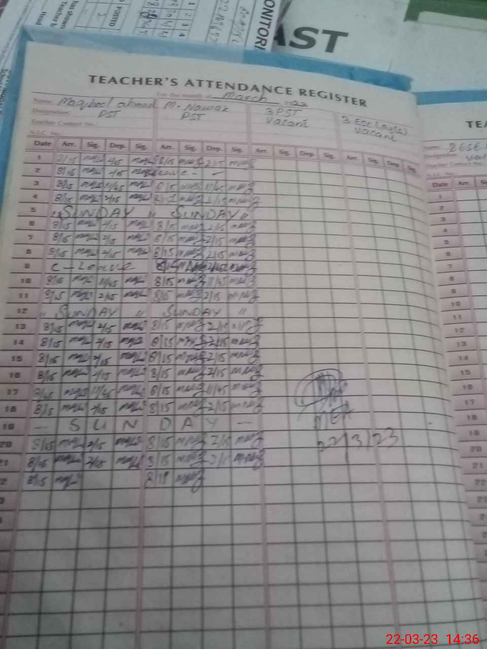 | Name: MA**** AH**** Designation: (School Headmaster's/Headmistress's) PST Phone/Cell Number: 03**** |