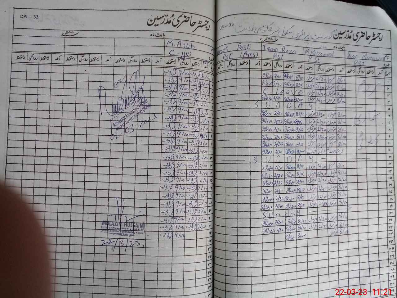 | CNIC | Full Name | Designation | R/C | Absence During Last Calender Month |