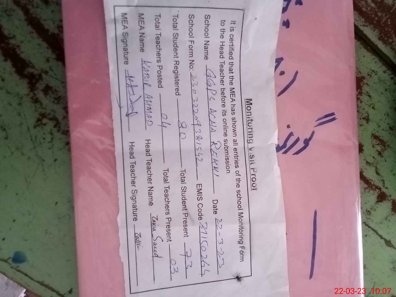 | Name: Za**** Sa**** Designation: (School Headmaster's/Headmistress's) PST Phone/Cell Number: 03**** |