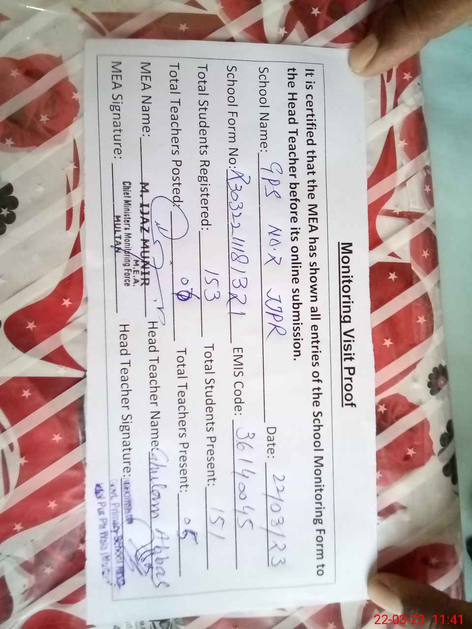 | EMIS Code: 36140045 | Name of School: GPS No. 2 JALALPUR PIRWALA | |||