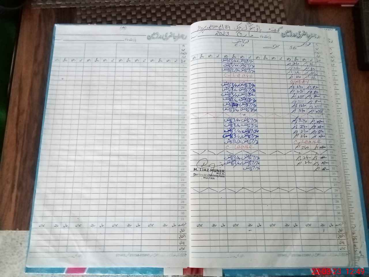 | CNIC | Full Name | Designation | R/C | Absence During Last Calender Month |