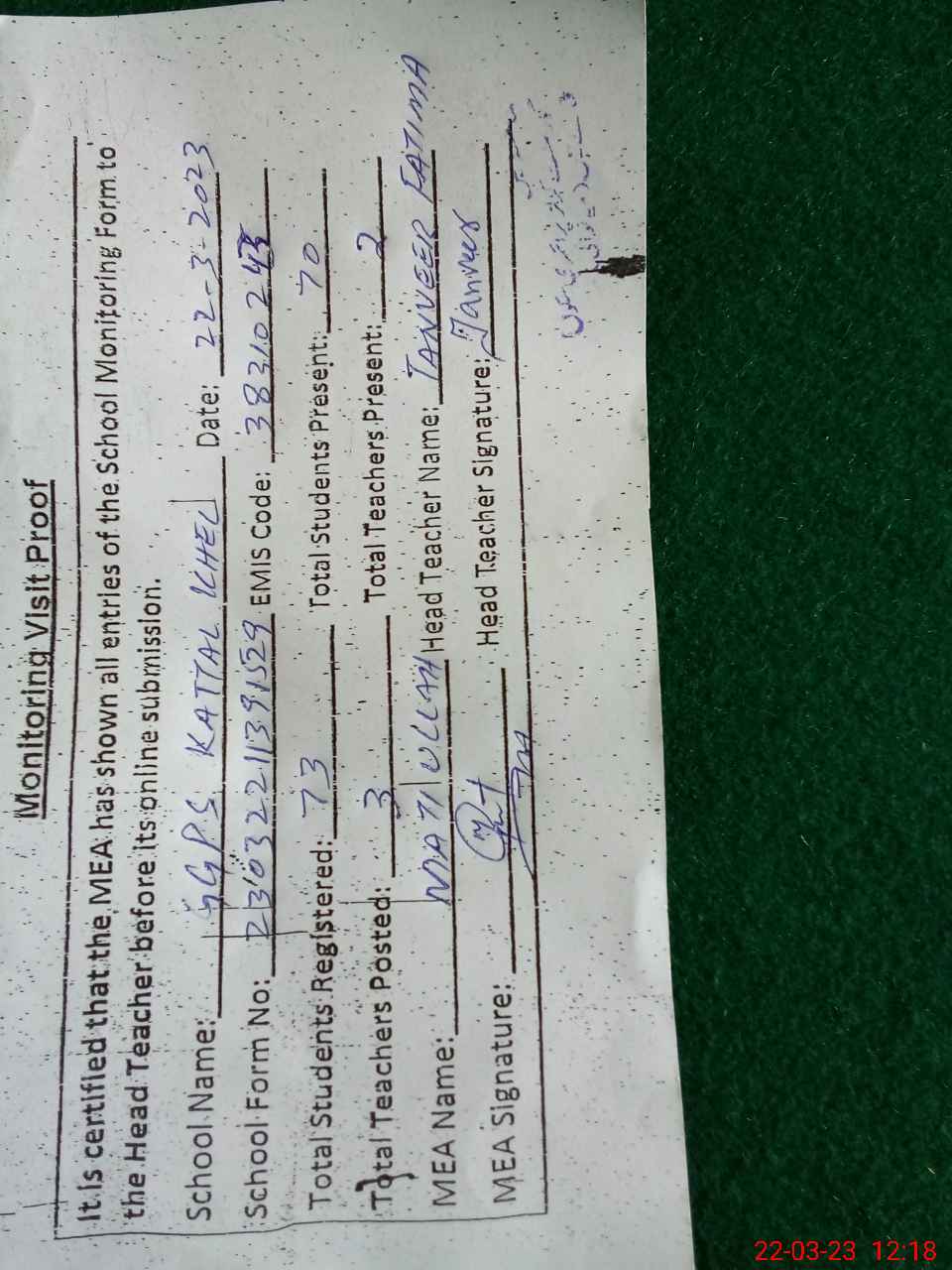 | EMIS Code: 38310243 | Name of School: GGPS KATTAL KHEL | |||