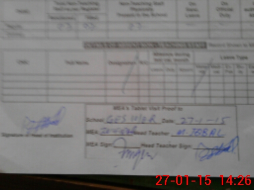 | Attendance Register | Head Teacher | MEA with School | Visit Proof |
