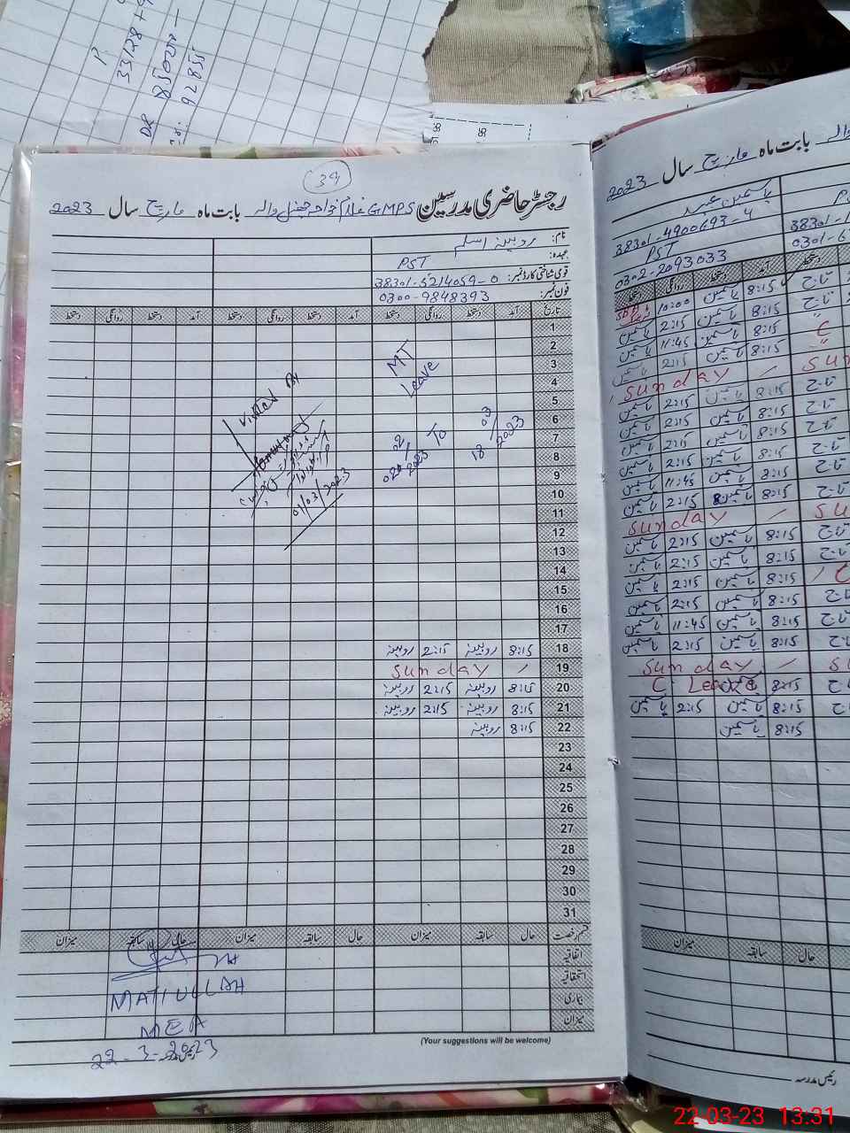 | Name: Ka**** BiBi Designation: (School Headmaster's/Headmistress's) PST Phone/Cell Number: 03**** |