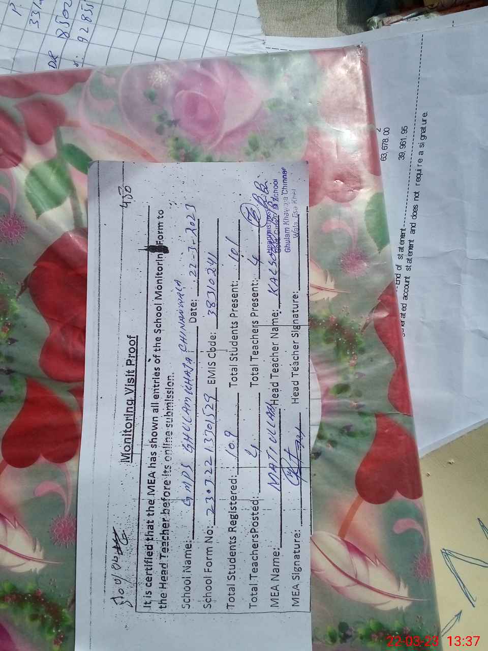 | EMIS Code: 38310241 | Name of School: GMPS GHULAM KHAWAJA CHEENAL WALA | |||