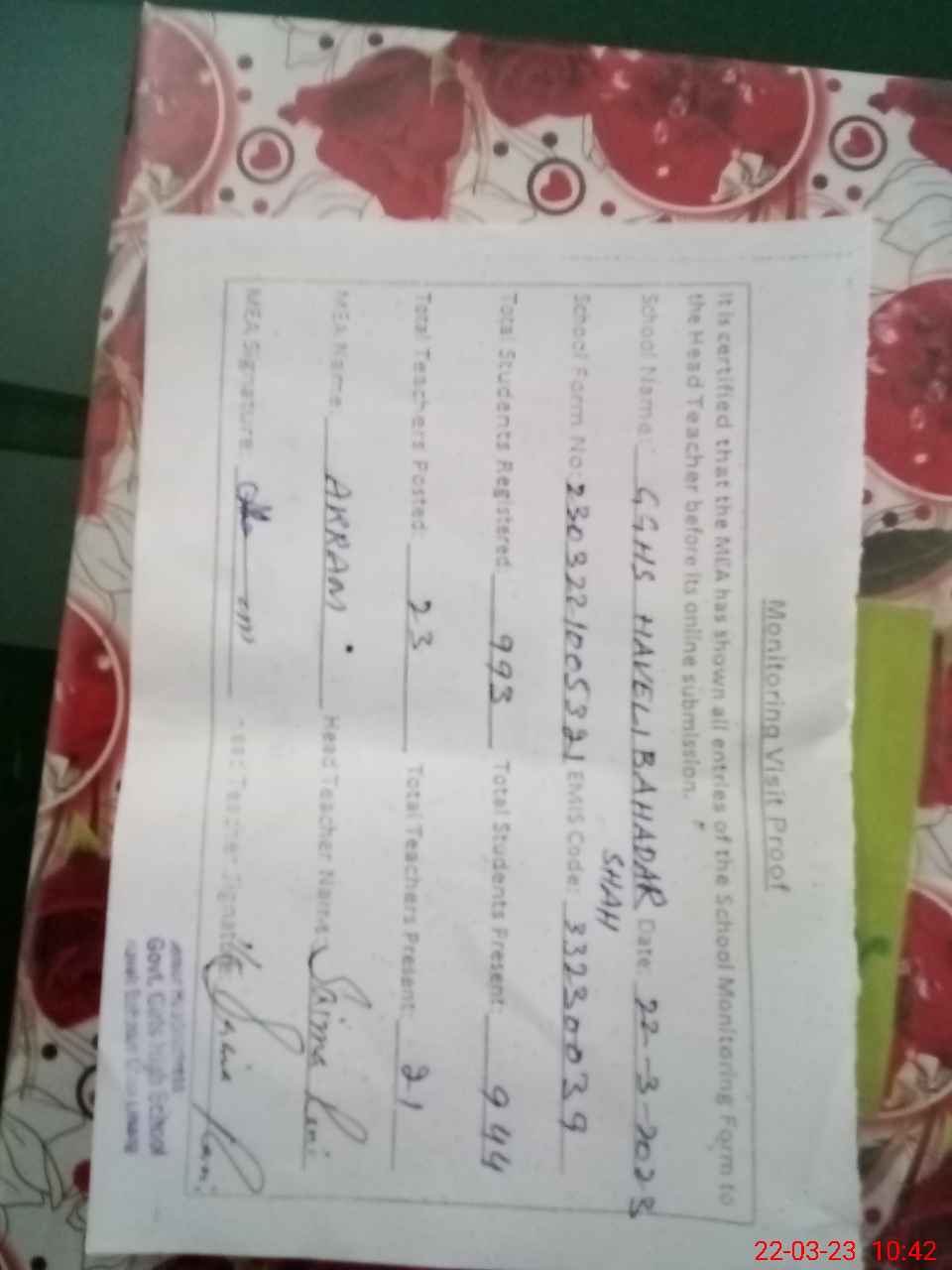 | EMIS Code: 33230039 | Name of School: GGHS HAVELI BAHADAR SHAH | |||