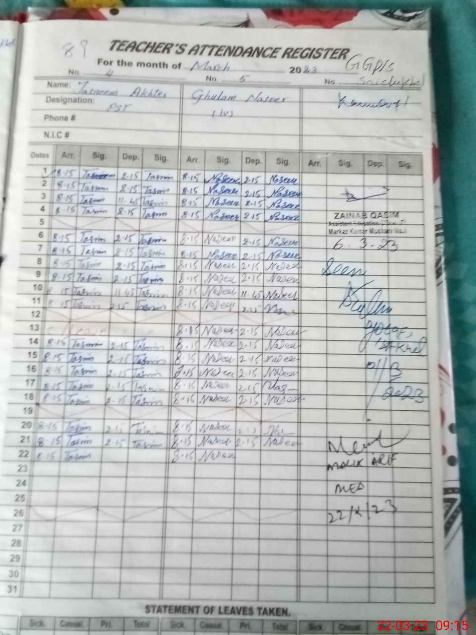 | Name: TA**** BI**** Designation: (School Headmaster's/Headmistress's) PST/PTC/JV Phone/Cell Number: 03**** |