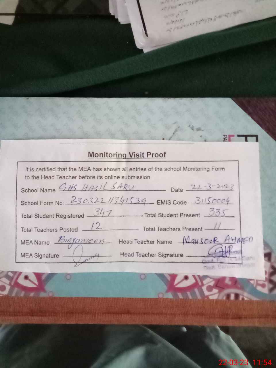 | EMIS Code: 31150004 | Name of School: GHS HASIL SARU | |||