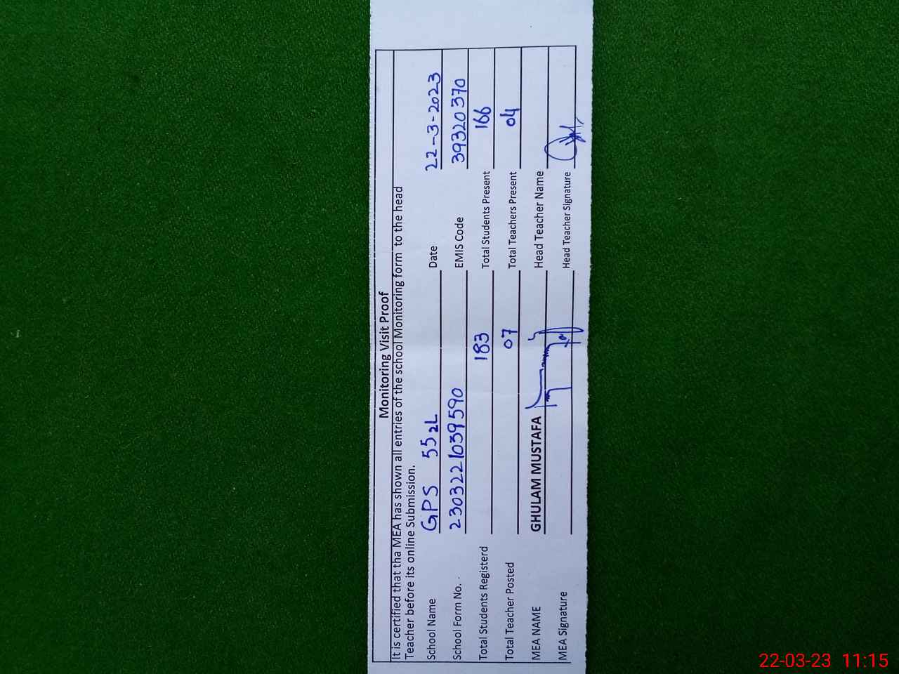 | Certified that this School was Inspected by the Undersigned MEA/DMO Today and the Information Stated Above is as Per Record. | |||||