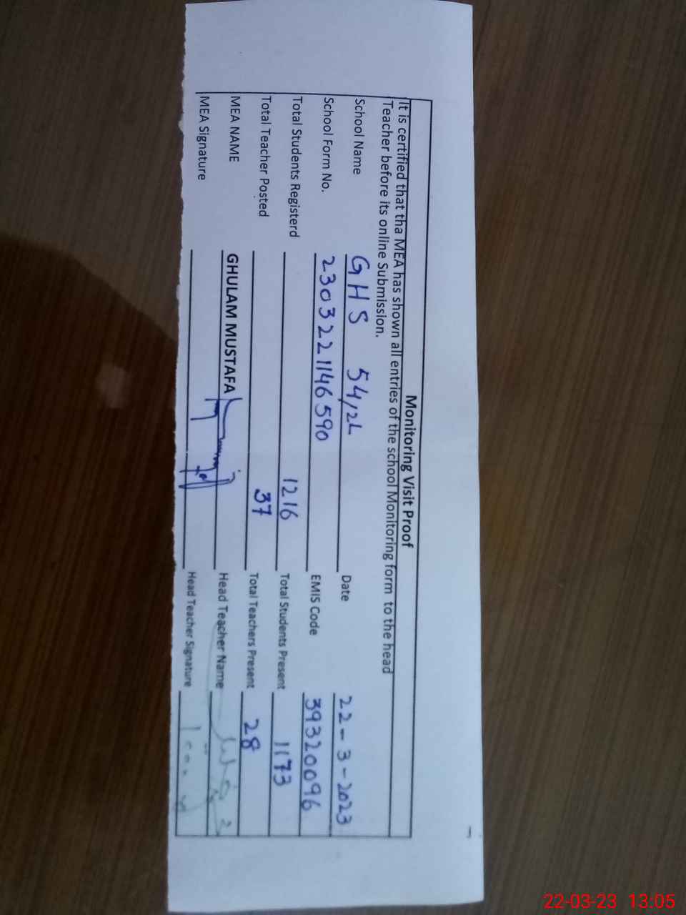 | EMIS Code: 39320096 | Name of School: GHS CHAK NO. 54/2-L | |||