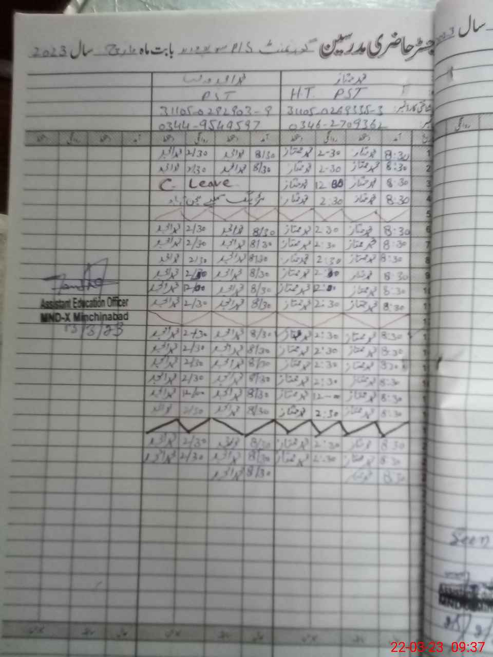| Name: MU**** MU**** Designation: (School Headmaster's/Headmistress's) PST Phone/Cell Number: 03**** |