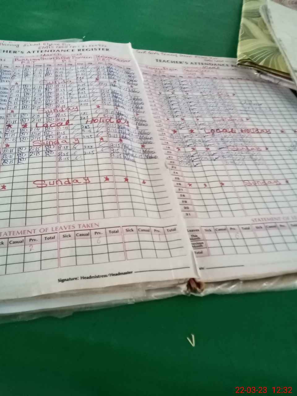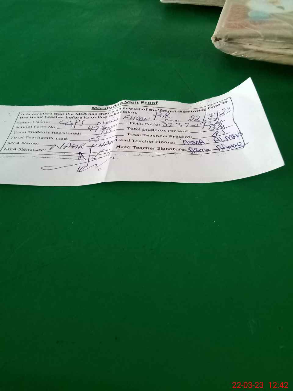 | Attendance Register | Head Teacher | MEA with School | Visit Proof |