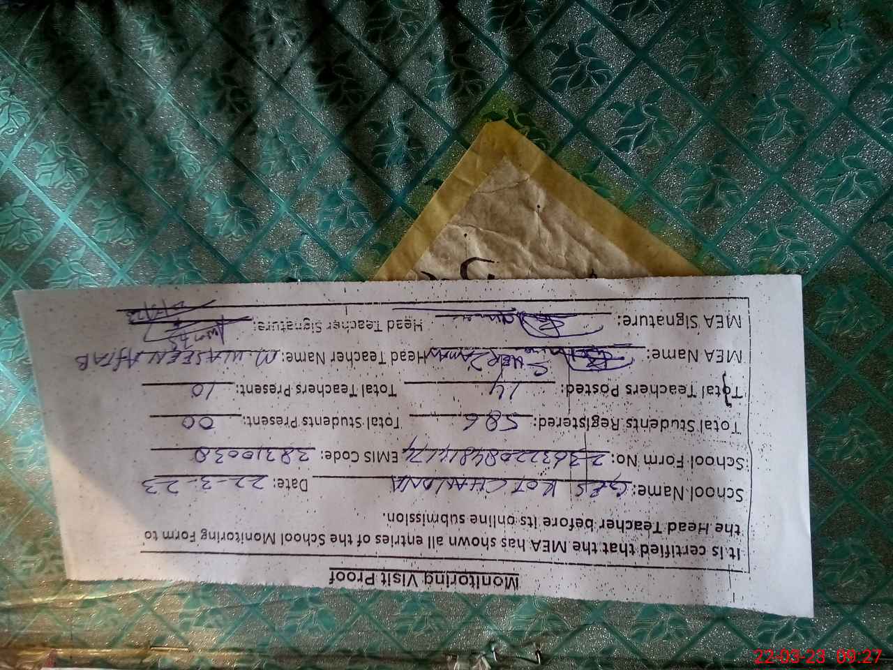 | Monitoring Date: 22-03-2023 | Start Time: 22-03-2023 08:48 AM | End Time: 22-03-2023 09:37 AM | Name of MEA: SH**** ZA**** | |