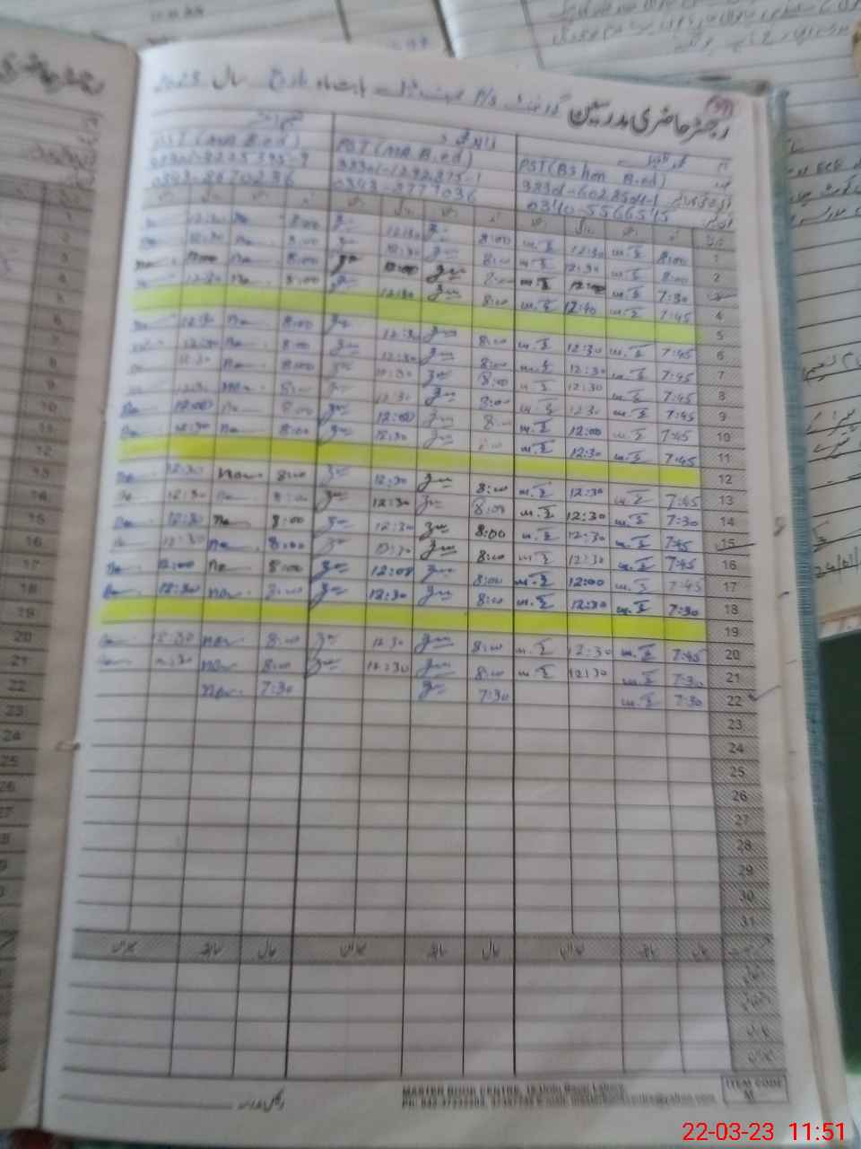 | CNIC | Full Name | Designation | R/C | Absence During Last Calender Month |