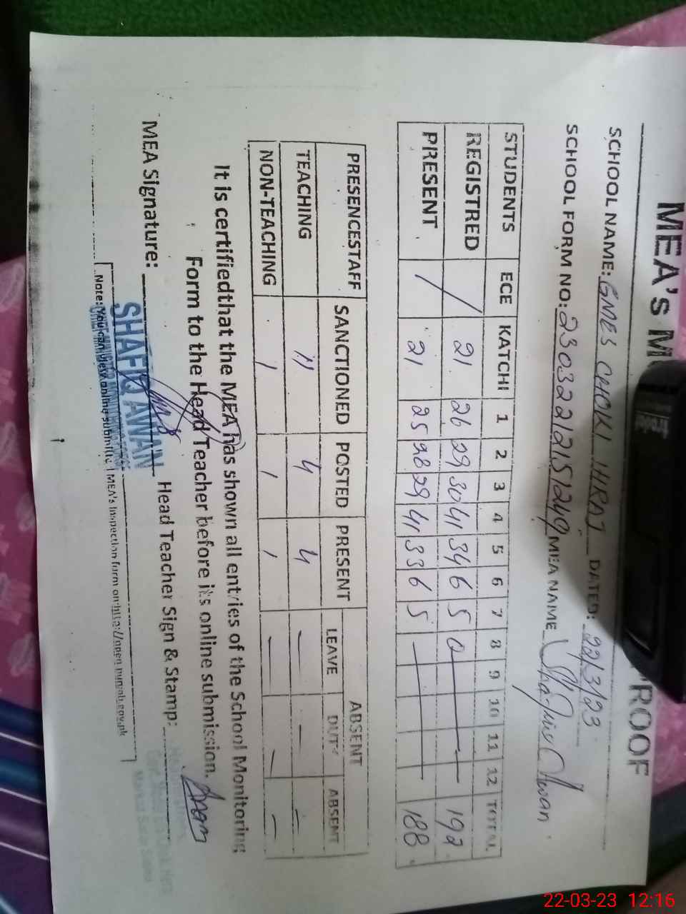 | EMIS Code: 36410407 | Name of School: GMES CHOKI HERAJ, SARAI SIDHU | |||