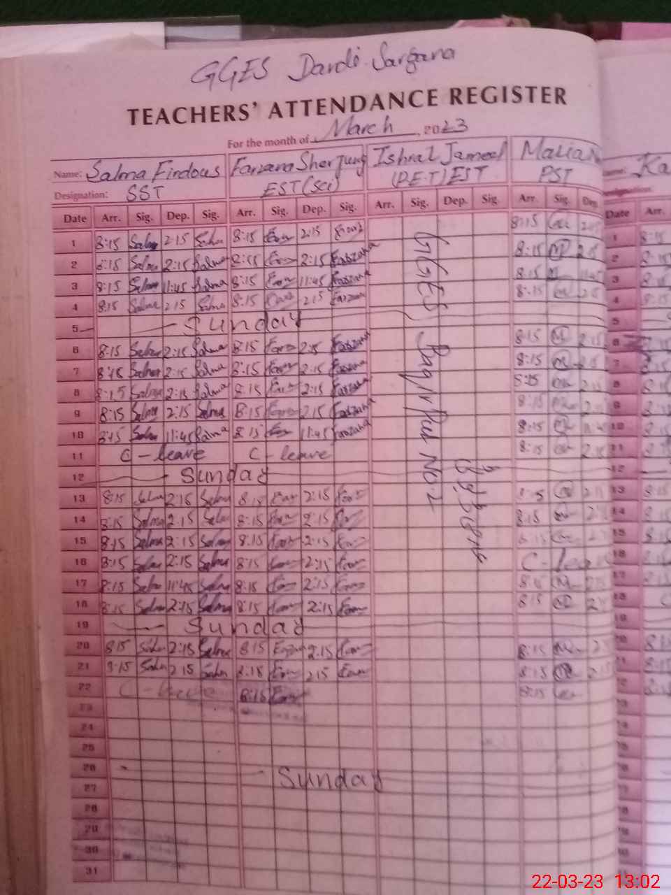 | CNIC | Full Name | Designation | R/C | Absence During Last Calender Month |