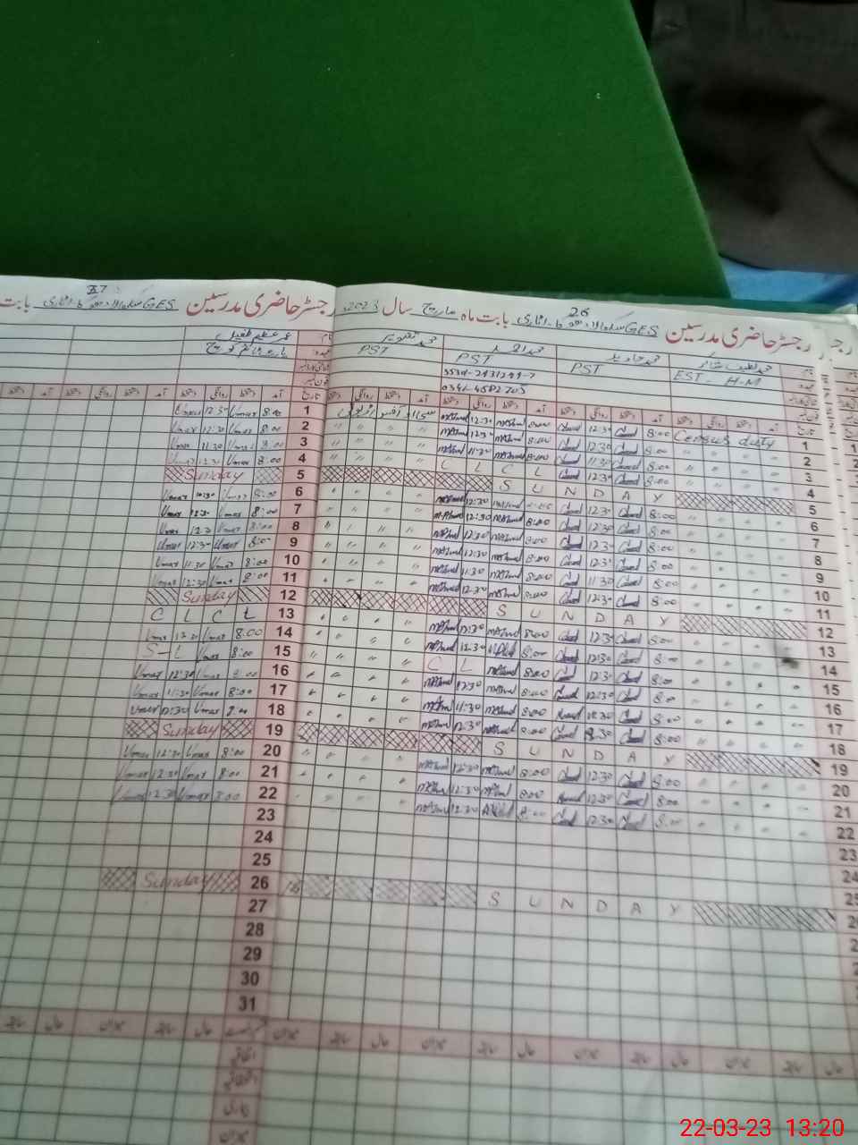 | CNIC | Full Name | Designation | R/C | Absence During Last Calender Month |