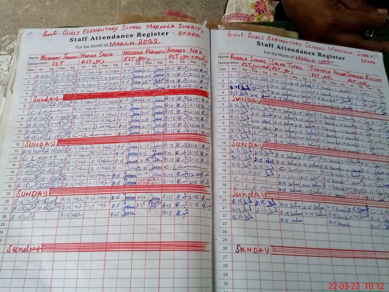 | District: OKARA | Tehsil: OKARA | Markaz: MAROOLA SHARIF-FEMALE | Level: Middle | |