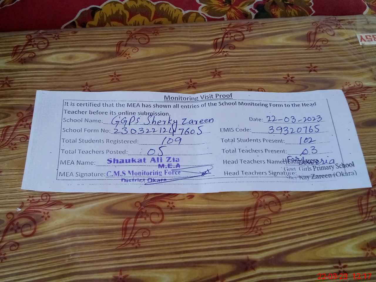| EMIS Code: 39320765 | Name of School: GGPS SHERKAY ZAREEN | |||