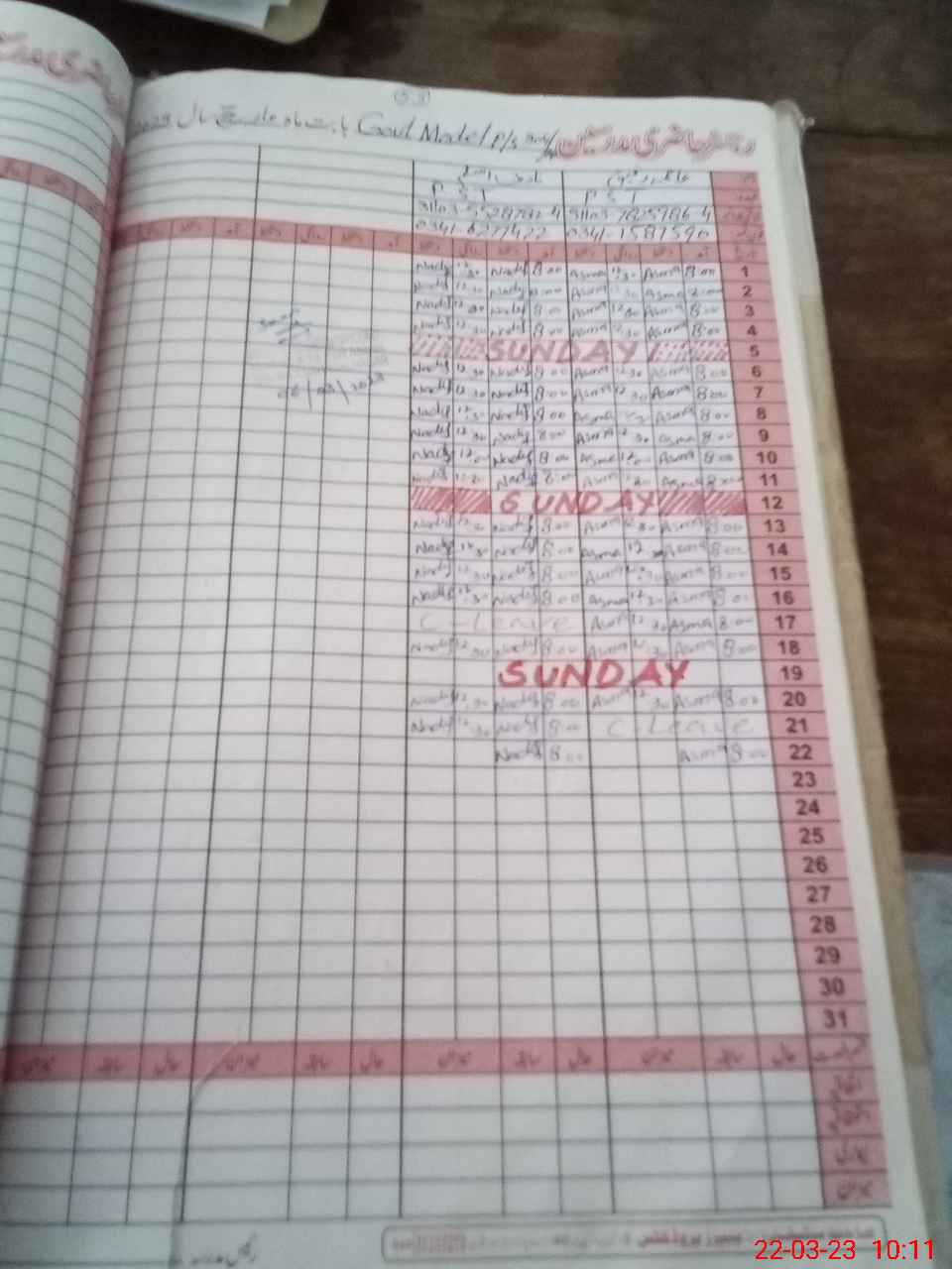 | CNIC | Full Name | Designation | R/C | Absence During Last Calender Month |