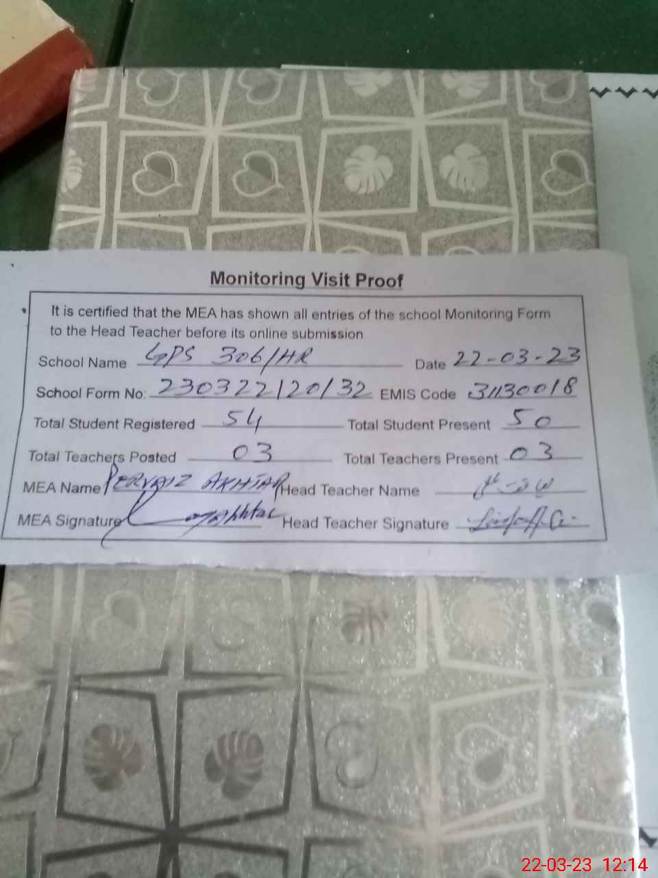 | EMIS Code: 31130118 | Name of School: GPS CHAK 306/HR | |||