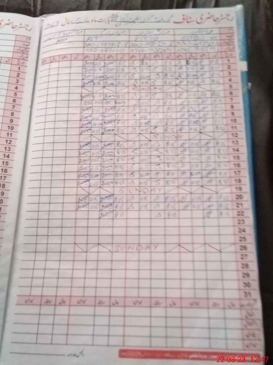 | CNIC | Full Name | Designation | R/C | Absence During Last Calender Month |