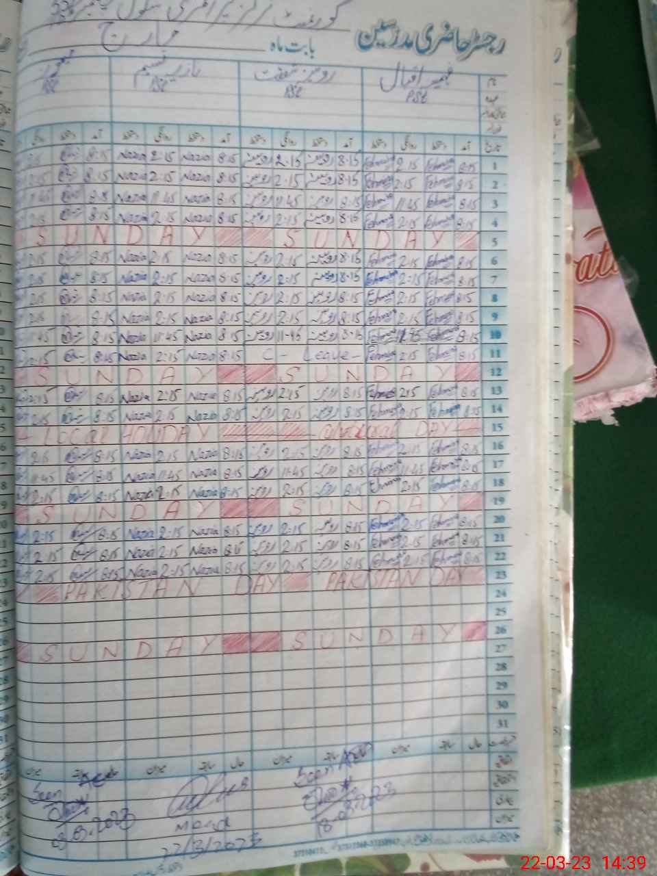 | CNIC | Full Name | Designation | R/C | Absence During Last Calender Month |
