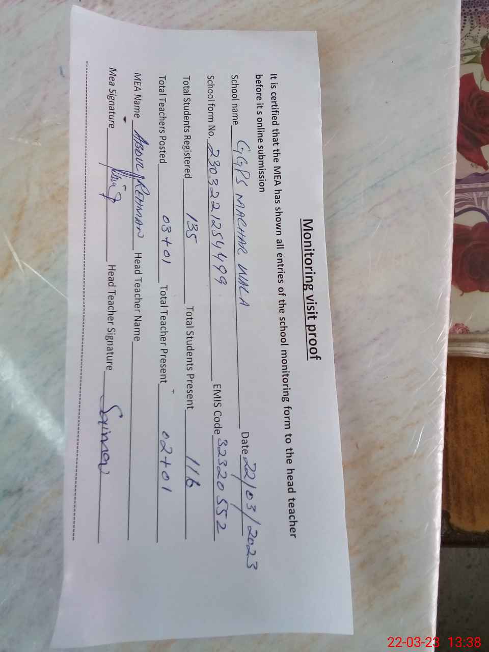 | EMIS Code: 32320552 | Name of School: GGPS MACHAR WALA | |||