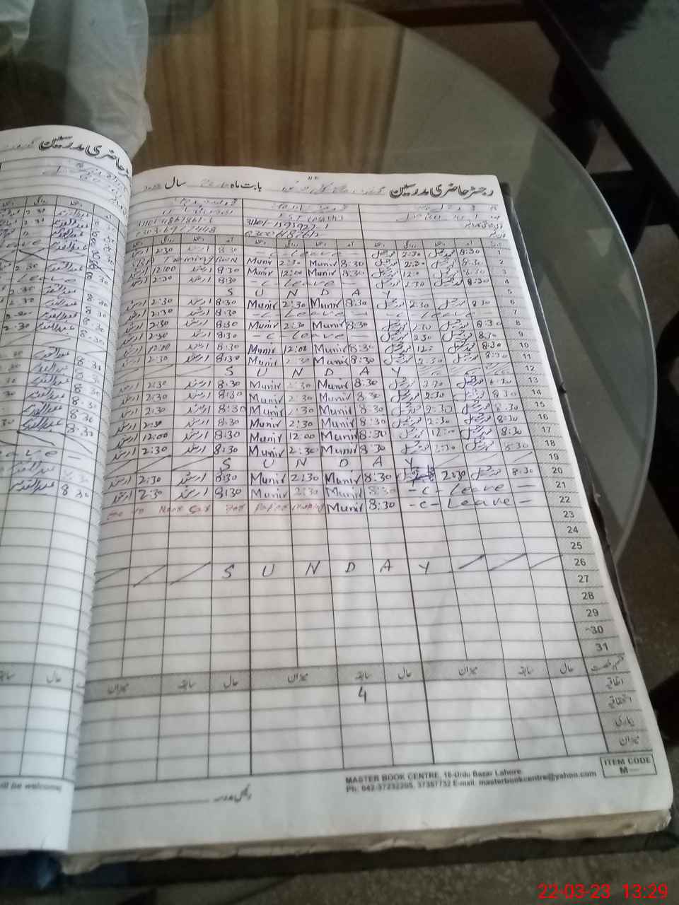 | CNIC | Full Name | Designation | R/C | Absence During Last Calender Month |