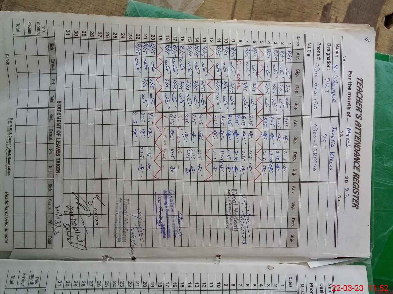 | Name: JA**** KH**** Designation: (School Headmaster's/Headmistress's) PST Phone/Cell Number: 03**** |