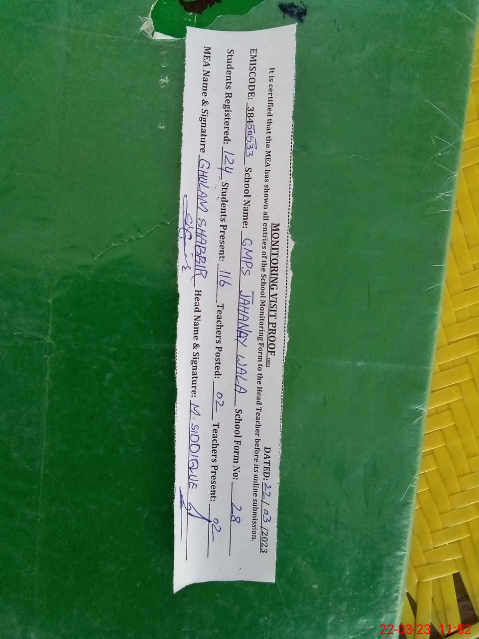 | EMIS Code: 38450533 | Name of School: GMPS JAHANEY WALA | |||