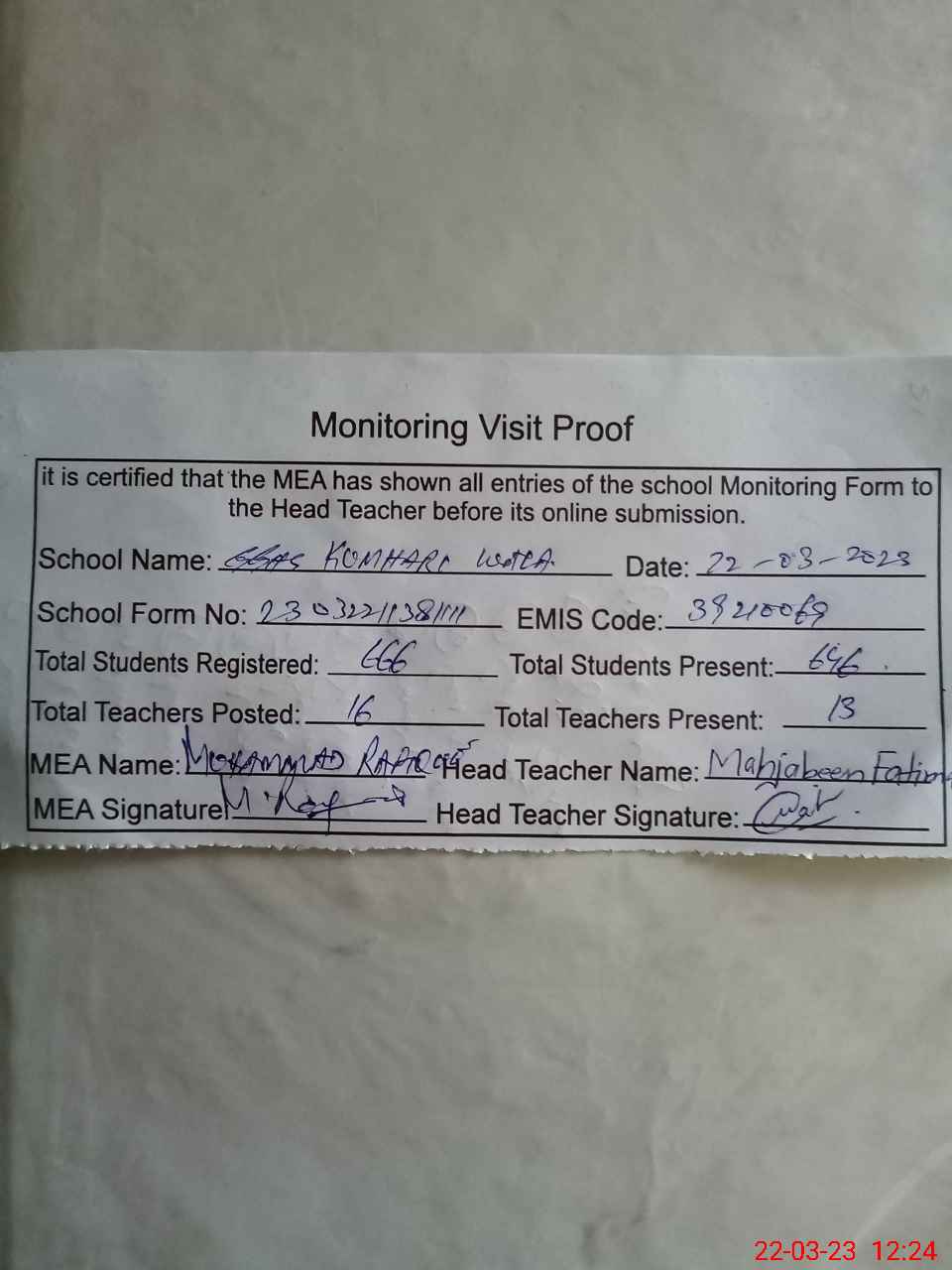 | EMIS Code: 39210069 | Name of School: GGHS KOMHARI WALA | |||