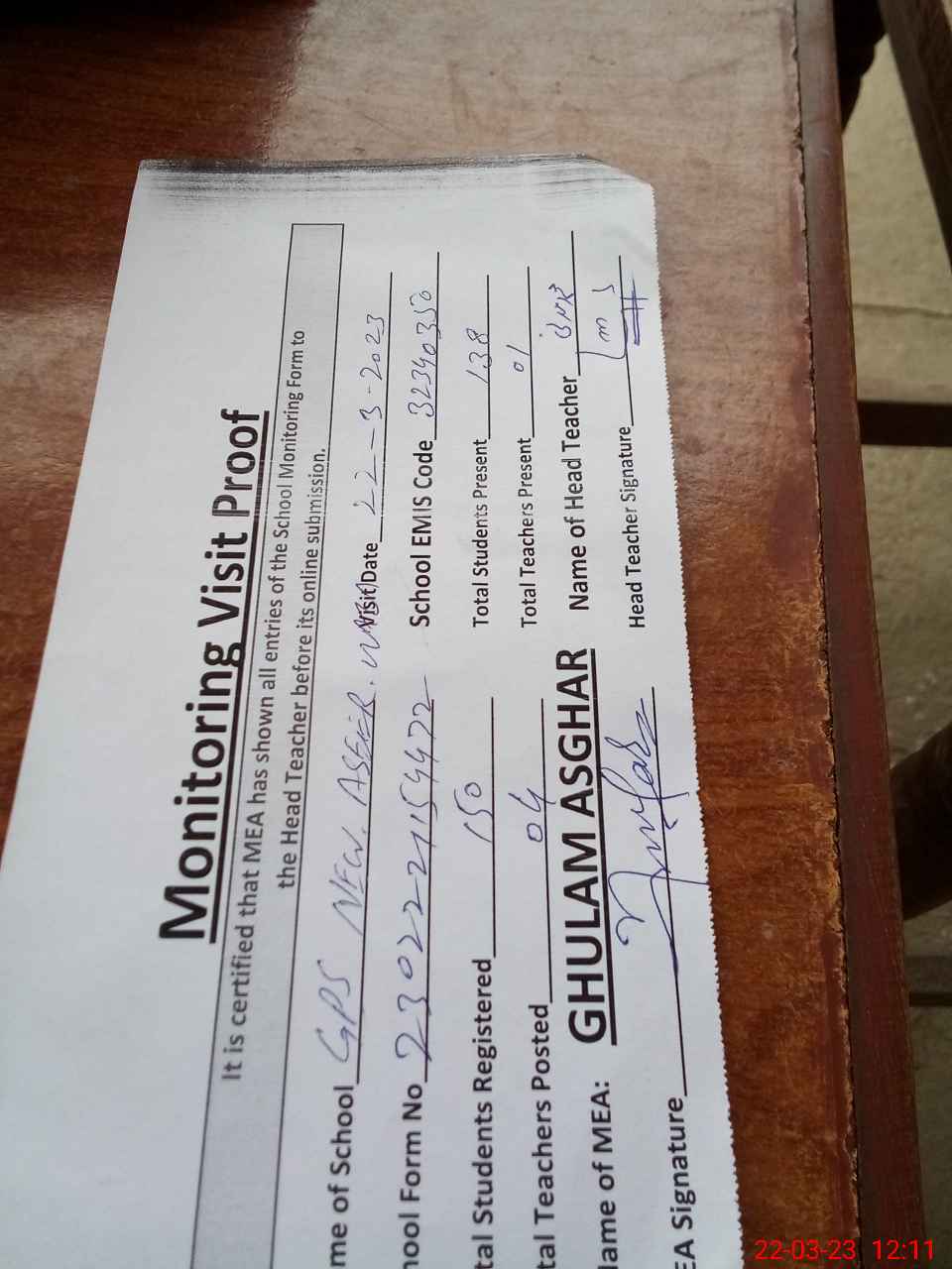 | EMIS Code: 32340350 | Name of School: GPS NEW ASIR WALA | |||