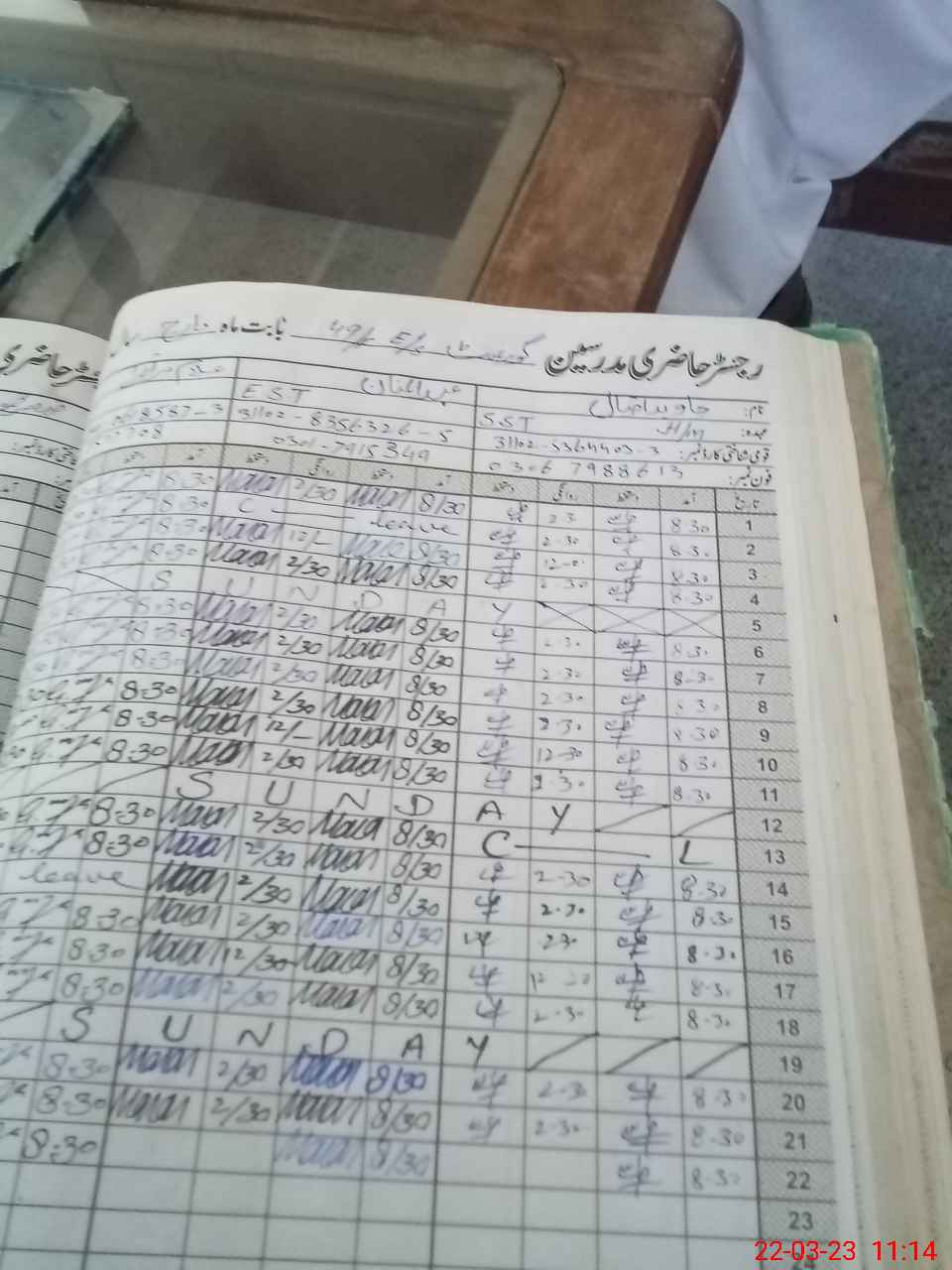 | Name: Gh**** Mu**** Designation: (School Headmaster's/Headmistress's) S.S.T. Phone/Cell Number: 03**** |